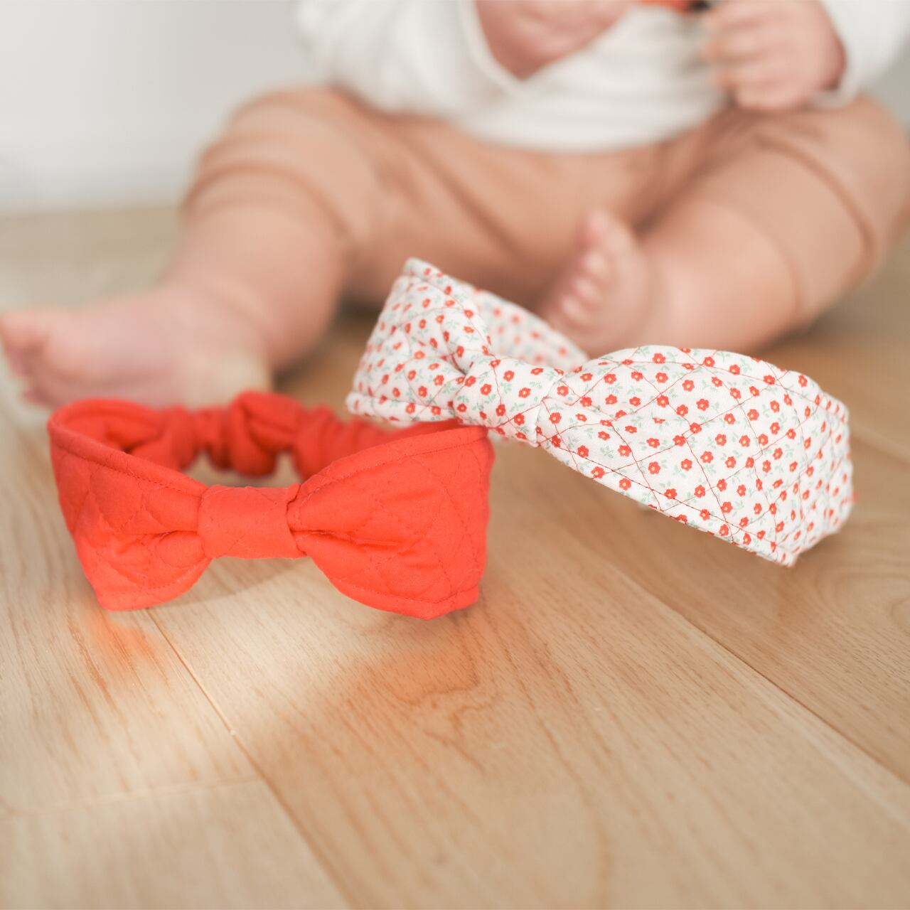 キルト生地のヘアバンドに子供用サイズを追加しました。ゴムは長さ調節可能で、商品が到着後に実際にお子様に当てて確認することが可能です。